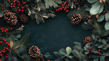 Discover an elegant Christmas border frame featuring pine cones and vibrant red berries, perfect for holiday-themed designs and seasonal decorations.