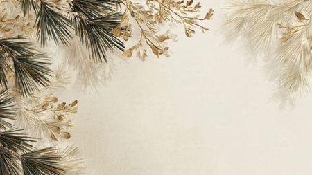 A stylish, minimal Christmas border with thin pine elements and metallic highlights.