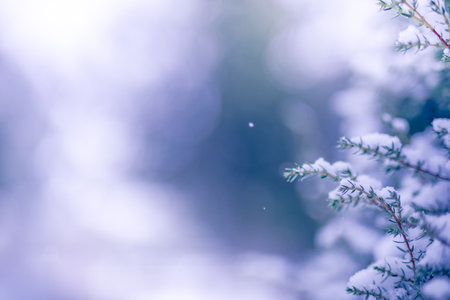 Closeup of colorful winter snowy forest background (High-resolution 3D CG rendering illustration)