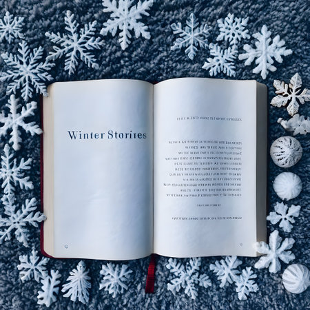 Open photo album displaying breathtaking winter scenery with a pristine river flowing through a snow covered landscape