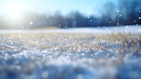 AI Generated. A winter scene of a grassy field blanketed in white snow
