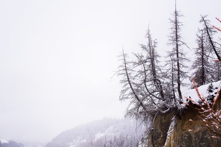 Wild Nature Winter Trees on Break Foggy Morning Time in Austria