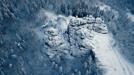 Winter in Carpathian Mountains. High-altitude aerial shot