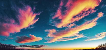 colorful dramatic sky with cloud at sunset, nature cloudscape background