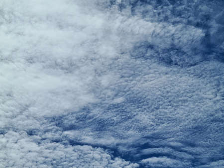 Natural sky composition. Sunny vast blue sky abstract background. Beautiful cloudscape, view over white fluffy clouds. Element of design. Freedom concept, on the heaven.