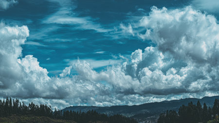 A captivating view showcasing a dramatic sky filled with billowing clouds above a serene landscape. This image evokes feelings of tranquility and connection to nature.
