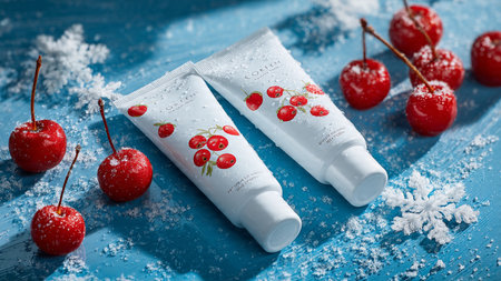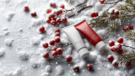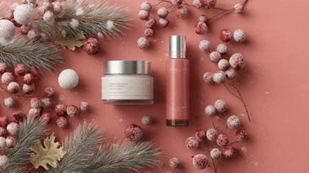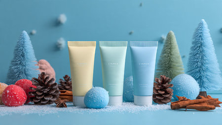 Cozy composition ideal for festive skincare promotions.