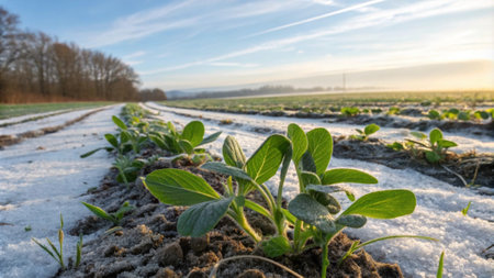 Cover crops flourishing in winter enriching soil health and ping carbon dioxide..