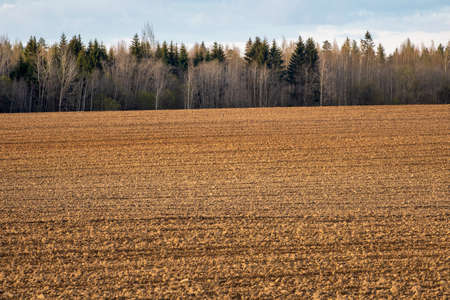 plowed land of an agricultural field ready for planting or sowing in spring beds . agricultural land field. Furrows from the plow. farm.
