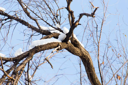Branches of trees on a snow background.