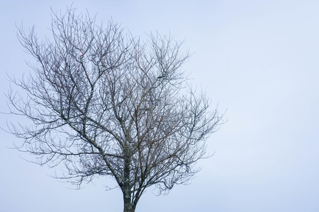 Black branches in the sky white in bad day.