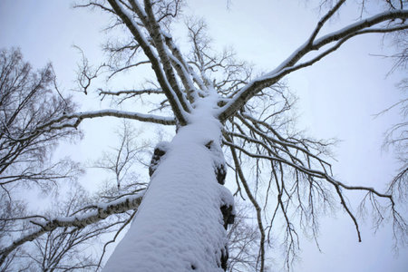 Solitary tree covered in snow on a winter day