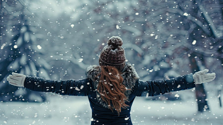 Young Woman Enjoying Snowy Winter Landscape