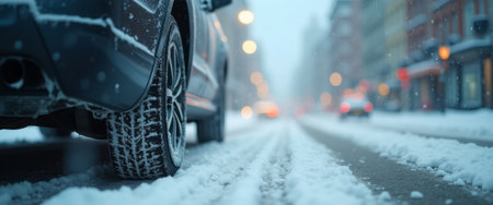 Closeup car on winter day background,, Winter Season - Ai Generated