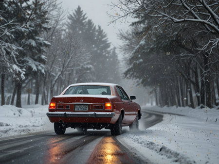 Road Safety Concept Driving in Winter Weather, Ensuring Safety Checks Before Travel Adventures