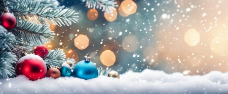 Festive Christmas and New Year Decoration with Snow