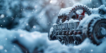 Snowcovered car engine parts in a winter setting showing creativity and resourcefulness. Concept Winter Photography, Creative Craftsmanship, Snowy Landscapes, Automotive Engineering