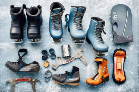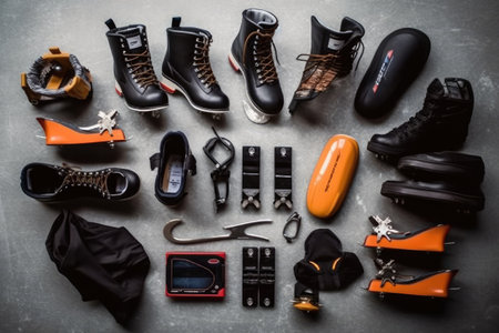 knolling of ice skating tools and equipment photoraphy Generated AI