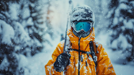 shot of a young male athlete getting ready to ski, created with generative ai