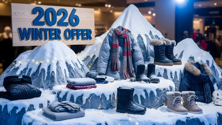 Winter clothing shop in the shopping mall. Winter clothing sale concept.