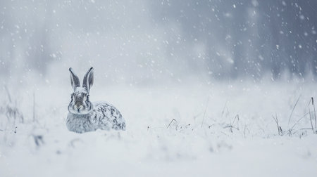 Elusive Hare Disguised in Snowy Terrain