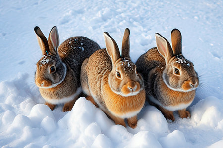 Three rabbits in the snow