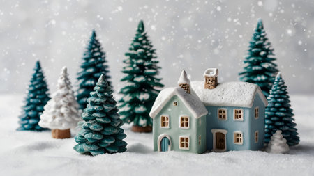 Winter. A Christmas card. Beautiful ceramic Scandinavian houses and Christmas trees. Festive mood, Christmas, New Year 2025