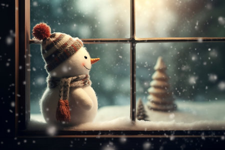 Adorable Snowman Awaits Snowfall at the Window AI