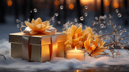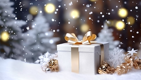 Elegant Luxury Christmas Gift with Gold Ribbon and Festive Decorations for New Year Celebrations