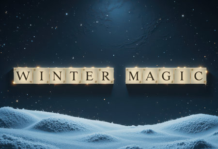 This enchanting winter scene captures the magic of the season with illuminated letters spelling Winter Magic against a snowy backdrop, evoking a serene and festive atmosphere.
