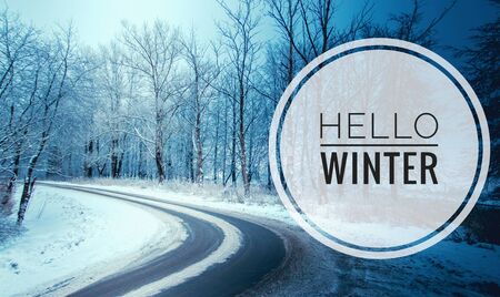 Banner Hello winter . The picture of Hello winter. New season. Nature. Winter road. Snow road. Much snow