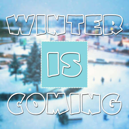 Winter is coming inspirational quote on cold seasonal background