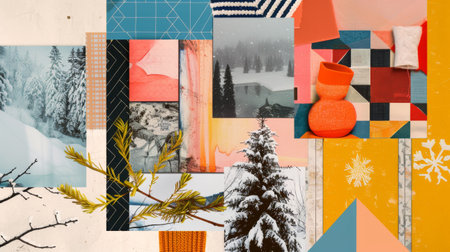 Winter Landscape Collage with Snowy Trees and Abstract Patterns in Nature Photography