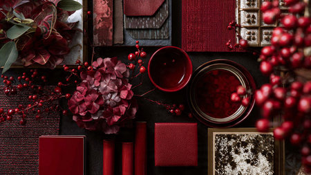 Modern minimal red-and-gold holiday aesthetic defined by organization and simplicity.