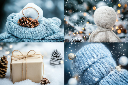 Festive Christmas Decorations and Winter Scenery with Cozy Knitwear