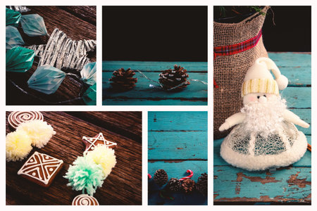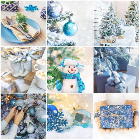 Collage with beautiful Christmas photos. Selective focus. New year.