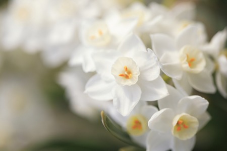 White daffodils on the meadow, shallow depth of field