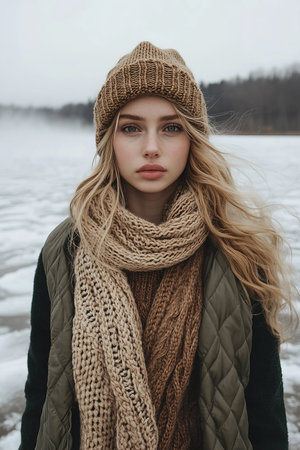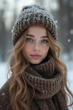 Winter Wonderland Woman in Knit Beanie and Scarf