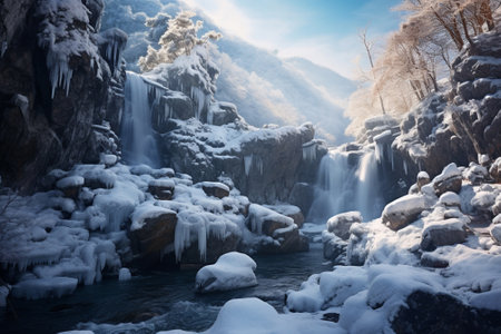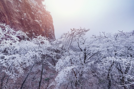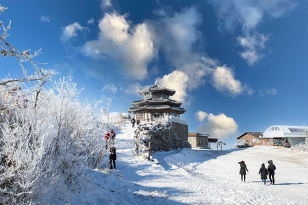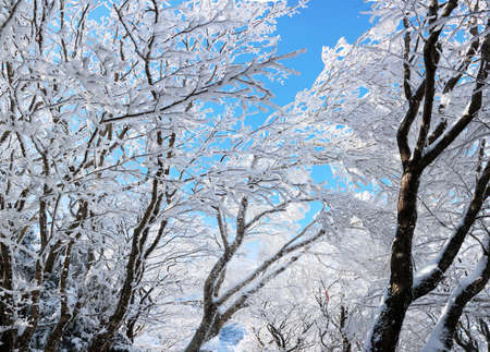 Atop the snow-capped Deogyusan mountains on a clear day and the snow blown by the wind in winter,South Korea.