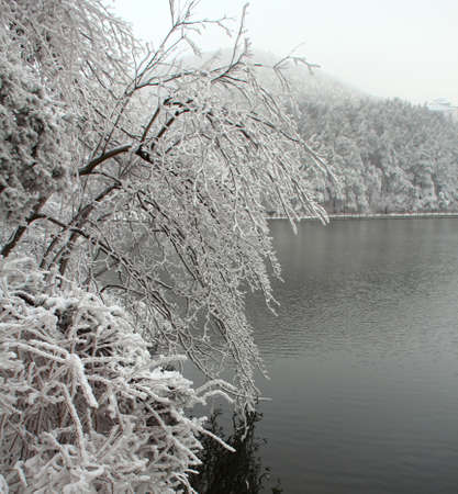 Scenery of Jingyuetan National Forest Park in Changchun, China after snow