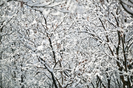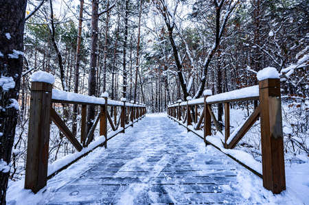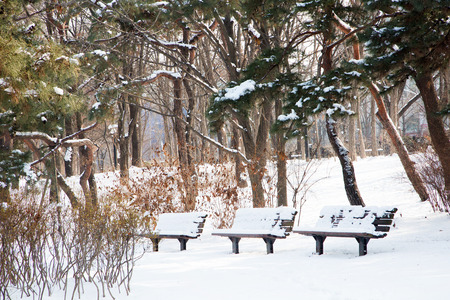 Snow scene in the forest in Nanhu Park, Changchun, China after the first snowfall