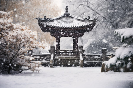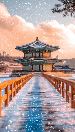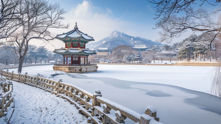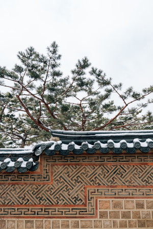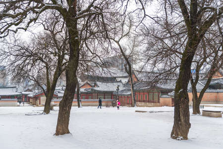 Korean traditional architecture, wintertime landscape of Korean palace 042