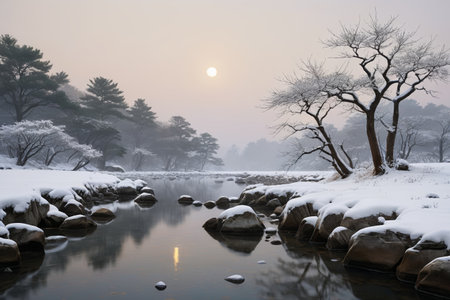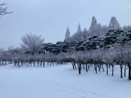 Beautiful winter landscape around Water park, Namyangju, South Korea.