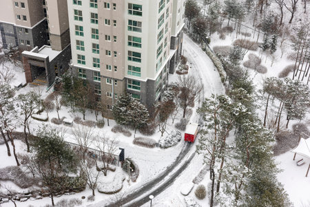Seoul Forest Park and apartment building at winter in Seoul, Korea