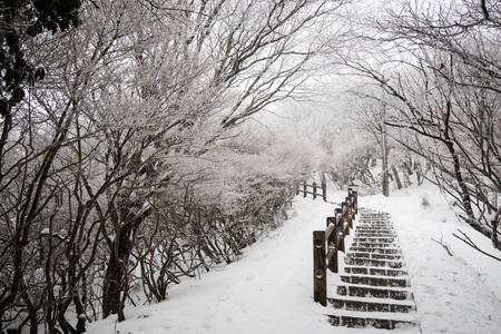 Korean Winter atop Deogyusan Mountain at Deogyusan National Park near Muju, South Korea.