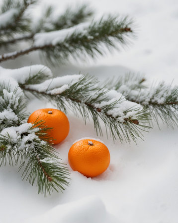 Christmas and New Year Mandarins on the snow