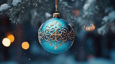 Christmas ornament with snowflakes on pine branch, winter holiday concept