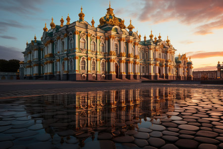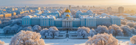 Winter Sunrise at the Palace, Historic Architecture in Saint Petersburg, Russia at Golden Hour