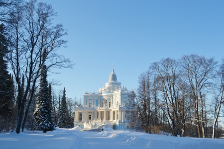 Pavilion Hermitage in Catherine park at Tsarskoe Selo in winter. Pushkin town. Saint Petersburg. Russia