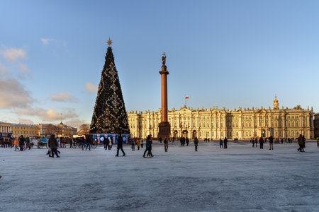 Saint Petersburg, Russia - January 7, 2018: View of Palace Square with Winter Palace in winter